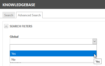 - On the Advanced tab of the Knowledge Base search, you can select the Global filter.