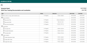 Description Displays the complete list of Project Phases and Tasks as per the project schedule.