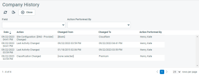 • Any change to a field on the entity itself is considered an edit. For a number of entities, the details of edits are tracked on a separate [Entity] History page. Refer to Entity History.