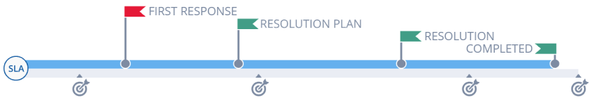 IMPORTANT Any SLA events with target date/times which occur later than the ticket's due date/time will not be shown on the timeline. You will not see a target, nor will you see an event flag when the event is achieved.