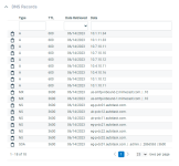 The DNS Records component will by default appear third from the top on the main body, below the WHOIS Information component, but the order can be modified. It contains a table with a quick filter row.