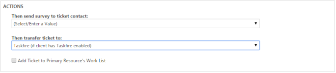 4. In the Actions area, select Then transfer ticket to: Taskfire.