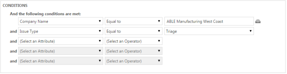 2. In the Conditions area, select the client the workflow rule will apply to, and any other conditions you would like met before the workflow rule is initiated.